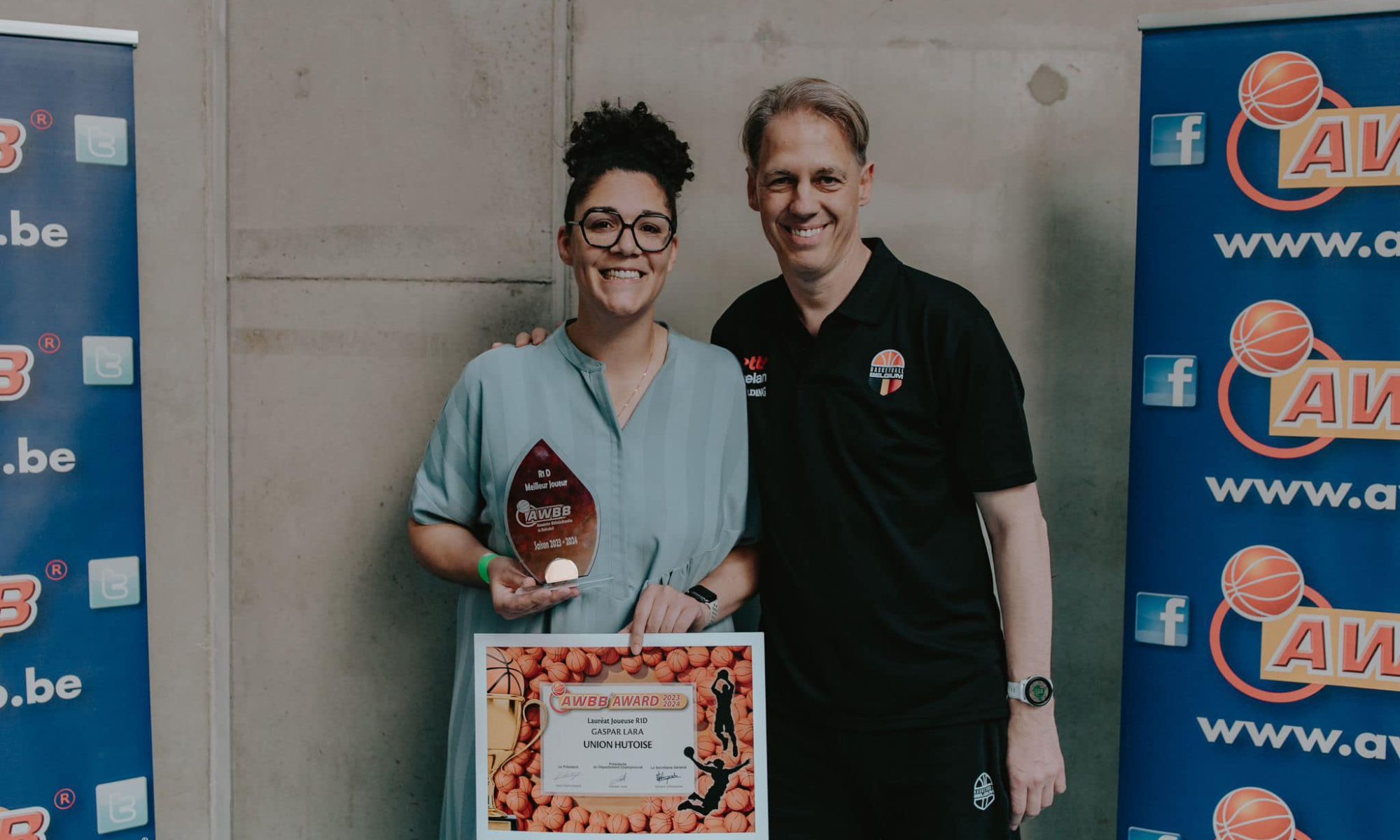 Avant le coup d’envoi du match amical entre les Belgian Lions et la Côte d’Ivoire, l’AWBB remettait ses awards. En R1, c’est la Hutois Lara Gaspar qui est élue Joueuse de l’année, devant sa coéquipière Laura Baggio. L’ancienne super scoreuse de TDW1 ajoute un nouveau trophée à son impressionnante collection.