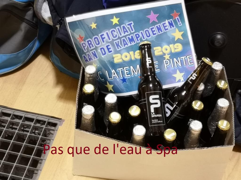 Dans un premier temps, ceux-ci avaient de suite accepté d’avancer la rencontre au vendredi. En cause, un tournoi international de tennis de table réquisitionnant, samedi et dimanche, l’ensemble de salles de la Fraineuse. On allait dès lors assister à une splendide partie de ping-pong de sportivité et d’amabilités entre les deux cercles. Juste avant le coup d’envoi, les Ardennais s’empressaient ainsi d’offrir un sympathique coffret de « La Sparsa » (une bière artisanale locale) à… De Pinte. Quoi de plus normal au vu l’intitulé du club adverse. Avec ce petit mot en prime : « Proficiat aan de Kampioenen ! 2018-2019 ». Un geste qui prouve également que l’on ne boit pas que de l’eau à Spa. Loin s’en faut, d’ailleurs…