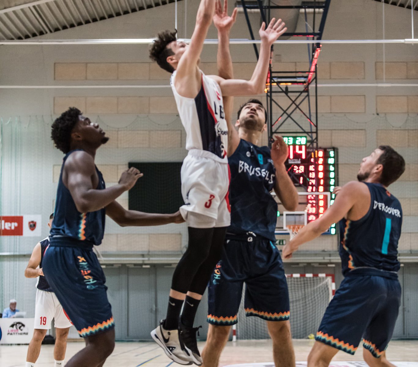 A la reprise, les locaux laissaient à leurs adversaires le soin de creuser leur avantage, 53-61 à la demi-heure. Mais dans le dernier quart, les Sang et Marine réduisaient l’écart pour finir par passer devant, 71-70, à la trente-cinquième. Le money time était étouffant et le suspens à son paroxysme. A 3,6 secondes du coup de sifflet final, Tom Malempré découpait la défense visiteuse et son tir transperçait le filet, offrant la victoire à son équipe, 84-84 !