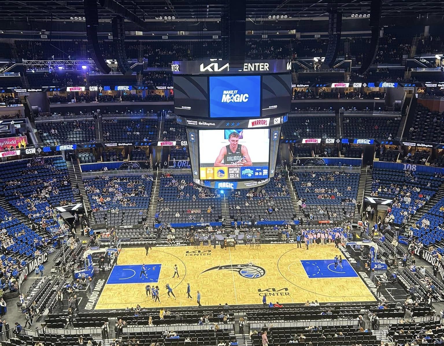 Les organisateurs de ce stage étaient-ils au courant que le 27 février est une date à laquelle Stephen Curry adore réaliser des cartons historiques ? En effet, le 27 février 2013, il avait établi son record en carrière avec 54 points (à 11 sur 13 from downtown) au Madison Square Garden. Trois ans plus tard, il avait claqué 46 points à 12 sur 16 à trois points – dont celui de la victoire à onze mètres – à OKC. Les membres de Game Time Activité ont donc été bien inspirés d’emmener les jeunes Liégeoises et Liégeois ce 27 février au Kia Center pour assister à la rencontre entre les Floridiens et les Warriors de Golden State. Deux équipes qui luttent pour une place en Playoffs mais qui vivent des saisons différentes. Les locaux ont dû composer depuis l’entame du championnat avec une guigne pas possible et une avalanche de blessure. Les Warriors avaient eux démarré l’exercice en trombe avant de connaître un sérieux passage à vide… Jusqu’à l’arrivée de Jimmy Butler – l’autre gros trade après celui du Luka Doncic aux Lakers ! – qui a relancé les récents quadruples champions.