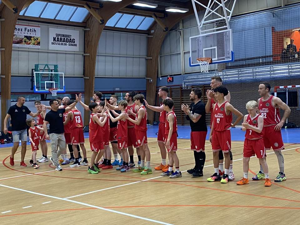 En seconde mi-temps, l’écart fluctuait au gré des bons passages des deux équipes. Virgile Materne (13 points) – malheureusement sorti pour blessure – et les Hesbignons se rapprochaient plusieurs fois mais avec Quentin Malpas (12 points) précieux à l’intérieur, Thomas Bassini (9 points) déterminant derrière l’arc et une vraie cohésion collective, Hugo Cloots (12 points) et les Métallos faisaient rugir leurs supporters de plaisir en remportant la victoire 96-80.